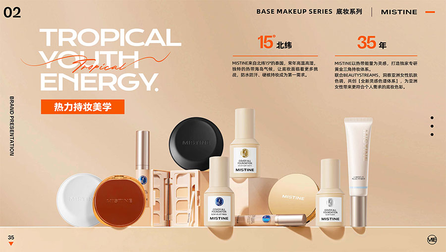MISTINE蜜絲婷1988年始源于泰國,作為知名國際美妝品牌,擁有超過35年的科研底蘊,產(chǎn)品種類涵蓋防曬、美妝、護膚、香水、個護五大類,擁有近6000多個單品暢銷全球20多個國家,專注為全球女性提供豐富、安全、高品質(zhì)的美妝產(chǎn)品。自2016年進入中國后,MISTINE蜜絲婷以“熱帶青春能量美妝”為品牌定位,為年輕人打造更懂得他們的全新美妝產(chǎn)品,并傳遞獨特的健康活力生活方式。