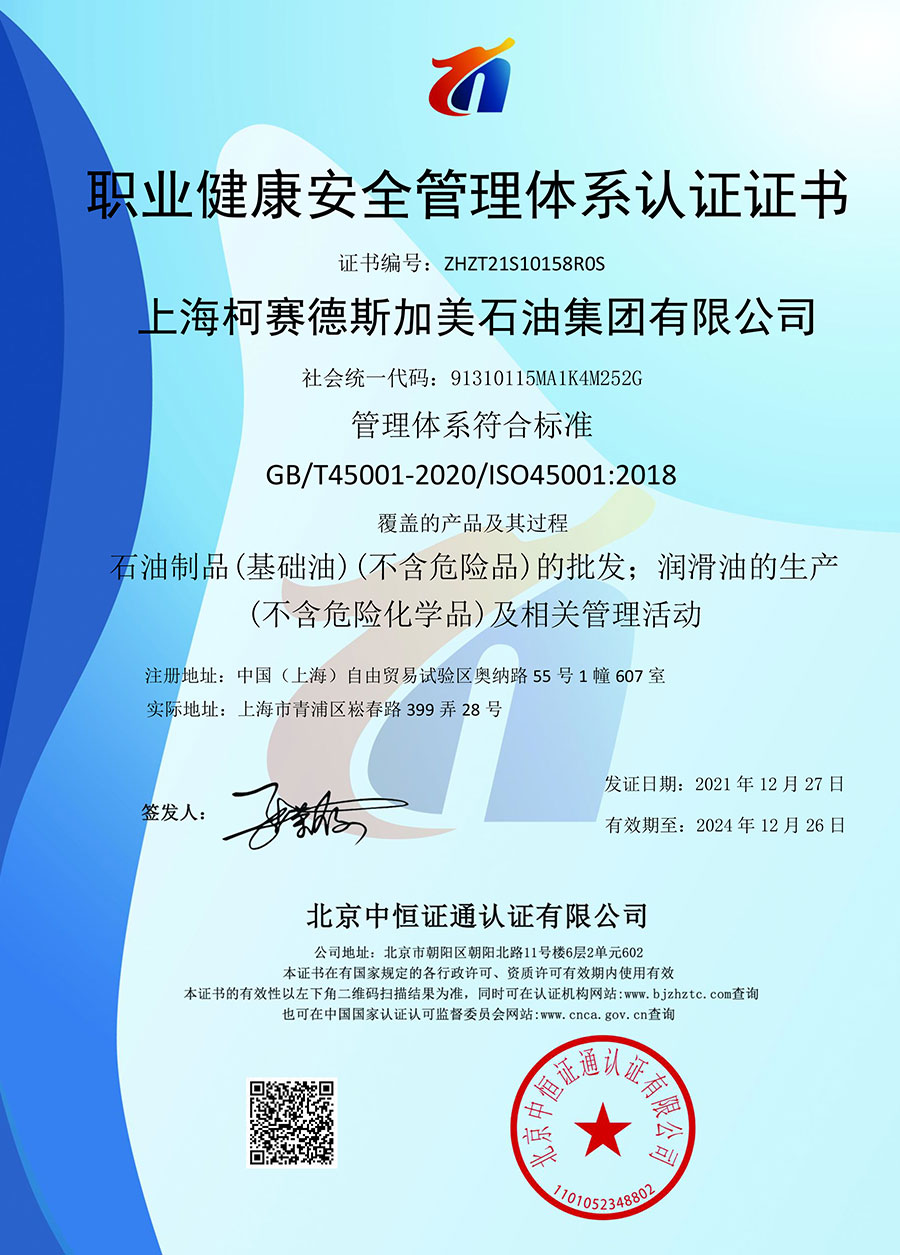 柯賽德斯集團(tuán)公司統(tǒng)一遵循嚴(yán)格的質(zhì)量保證體系,先后通過(guò)了武器裝備質(zhì)量管理體系認(rèn)證GJB9001C-2017、ISO/TS16949、IS09001質(zhì)量體系認(rèn)證、1S014001環(huán)境體系認(rèn)證及ISO45001:2018職業(yè)健康安全管理體系認(rèn)證。隨著業(yè)務(wù)領(lǐng)域的不斷擴(kuò)展,目前柯賽德斯集團(tuán)公司先后與多家世界能源、化工方面的巨頭建立了產(chǎn)品服務(wù)、供應(yīng)保障、技術(shù)合作、技術(shù)特別支持單位等方面的戰(zhàn)略合作關(guān)系。今天,柯賽德斯集團(tuán)旗下管理著三大潤(rùn)滑油品牌,實(shí)現(xiàn)了經(jīng)營(yíng)上的多元化戰(zhàn)略格局。