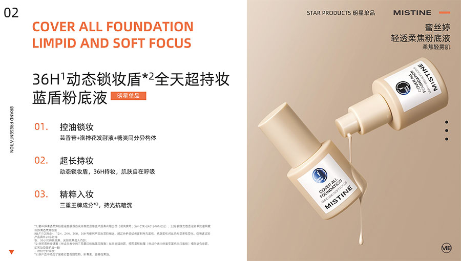 主要產(chǎn)品:MISTINE蜜絲婷防曬、美妝、底妝、彩妝、護膚、香水、個護等產(chǎn)品