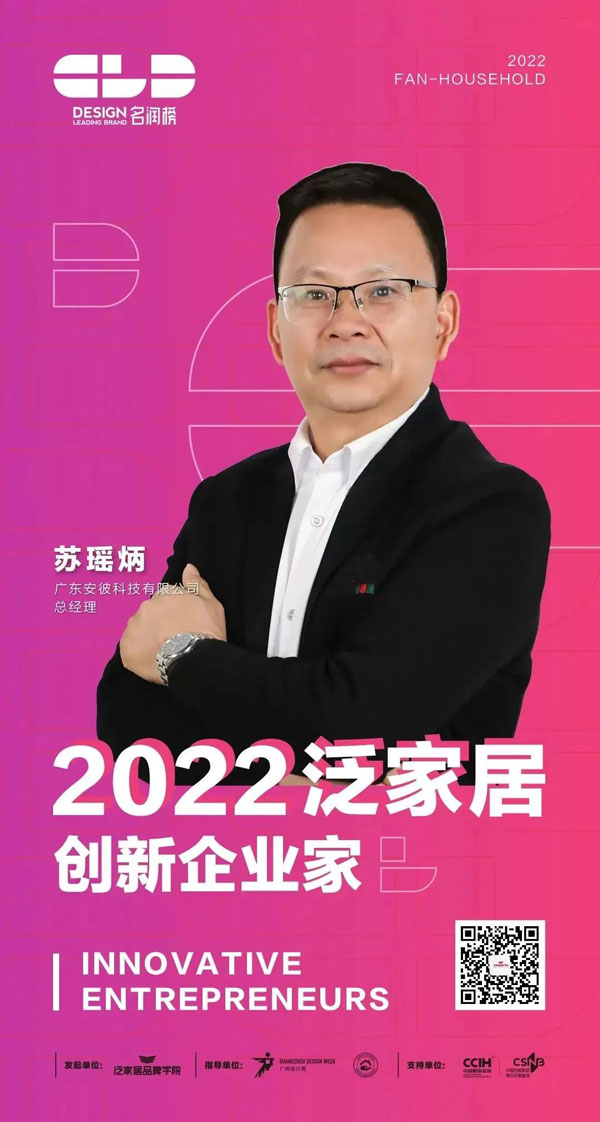 本次頒獎典禮同時揭曉了“創(chuàng)新企業(yè)家”獎項的評選結果,安彼衛(wèi)浴總經理蘇瑤炳榮獲“2022泛家居創(chuàng)新企業(yè)家”稱號。在安彼衛(wèi)浴企業(yè)發(fā)展過程中,蘇瑤炳總經理始終堅持品牌戰(zhàn)略,把創(chuàng)新的設計注入到品牌和產品之中,主導多項產品的發(fā)明專利、實用新型專利、外觀設計專利等項目,研發(fā)的產品AB-3343獲評中國水效領跑者,推動安彼衛(wèi)浴高質量發(fā)展,也為國內外市場增加了更多節(jié)水型衛(wèi)生陶瓷產品。同時,蘇瑤炳總經理現任全國建筑衛(wèi)生陶瓷標準化技術委員會委員、全國工業(yè)節(jié)水標準化技術委員會委員,參與起草制定了GB 6952-2015《衛(wèi)生陶瓷》及GB 38448-2019《智能坐便器能效水效限定值及等級》等多項國家標準,推動行業(yè)的整體質量水平提升和標準化事業(yè)發(fā)展。獲此殊榮,不僅是對蘇瑤炳總經理個人的認可,也是對安彼衛(wèi)浴創(chuàng)新發(fā)展的肯定,同時激發(fā)了安彼衛(wèi)浴不斷進取、奮勇向前的決心。